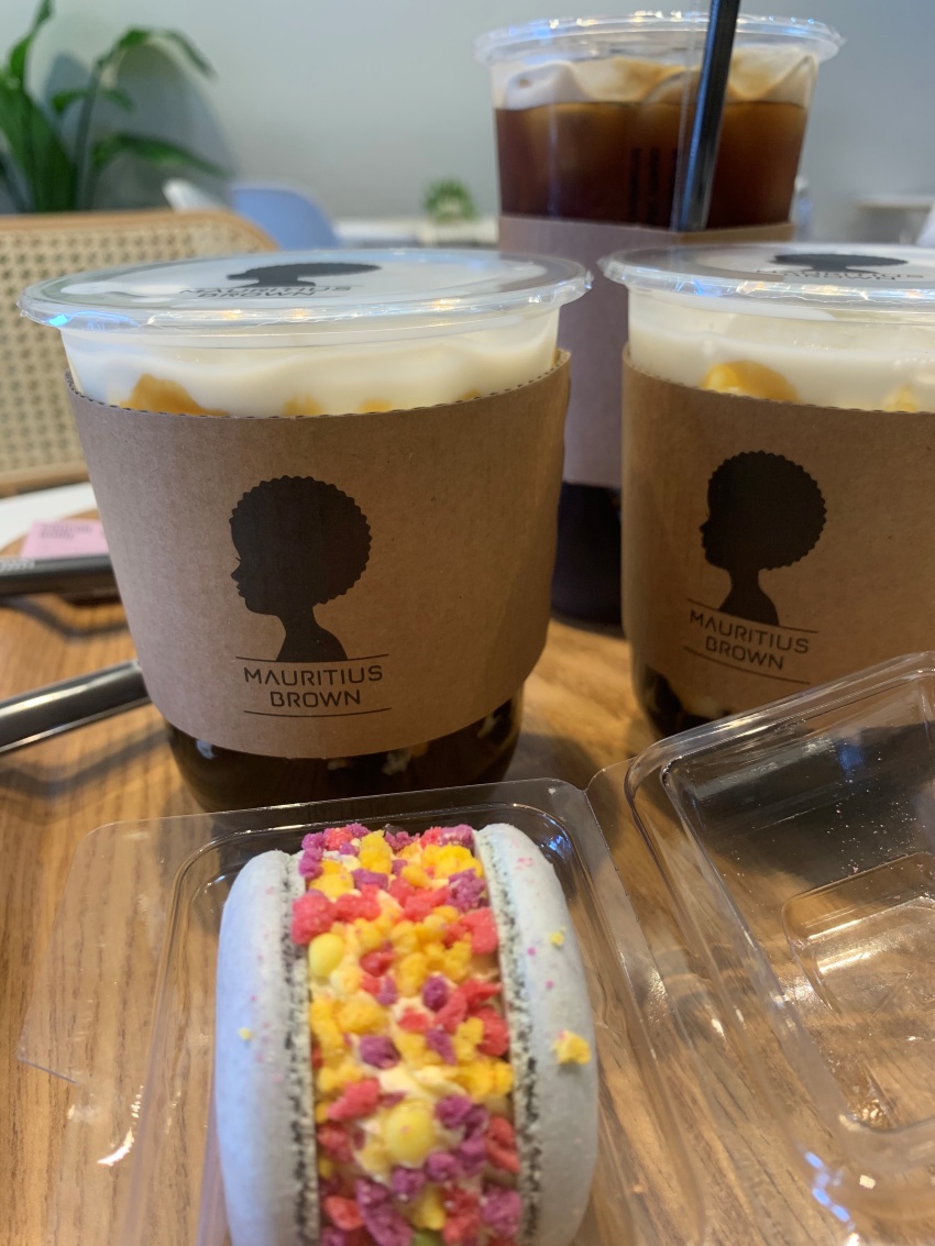 일행은 흑당버블티와 아이스 아메리카노, 슈팅스타 마카롱을 주문했습니다. 마카롱은 조카 녀석의 디저트라서 못 먹어봤네요. 다음엔 아이를 두고 나와서 디저트를 맘껏 먹어봐야겠어요.