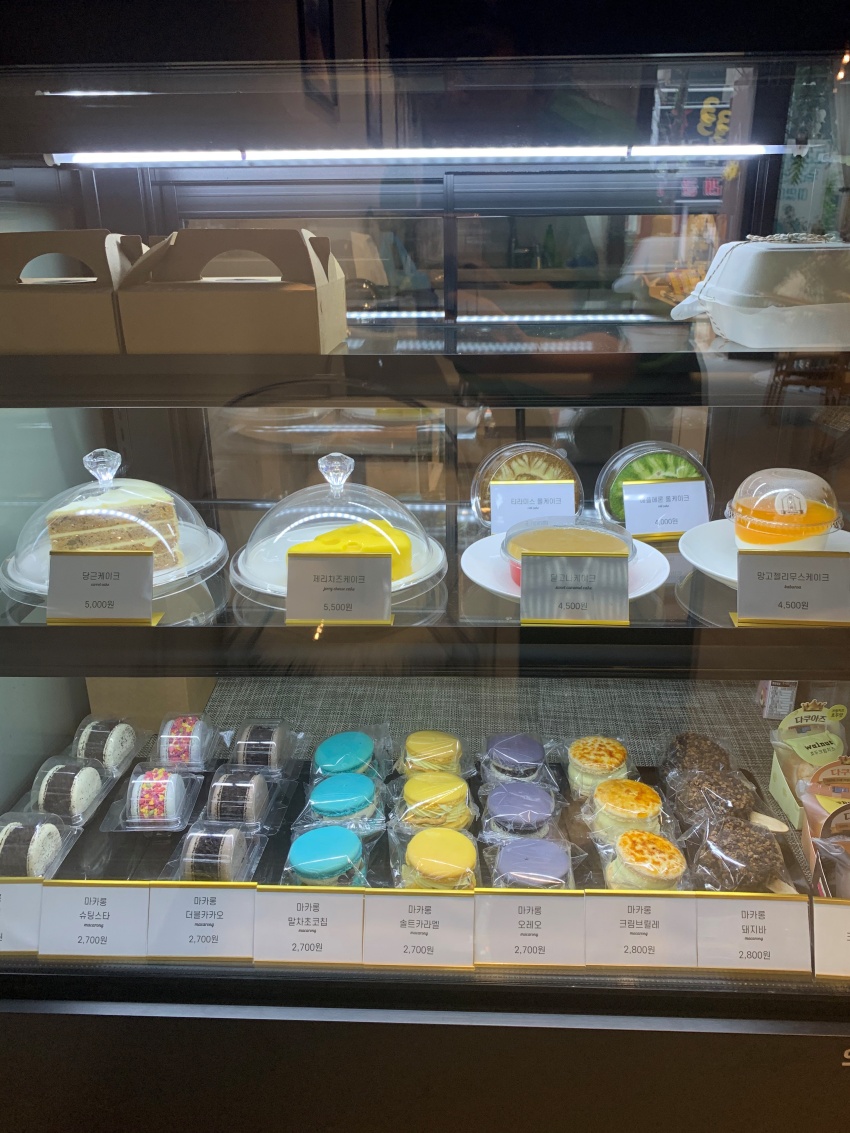달달한 롤케익과 조각 케이크, 마카롱도 있답니다. 마카롱은 요즘 유행하는 뚱카롱입니다.