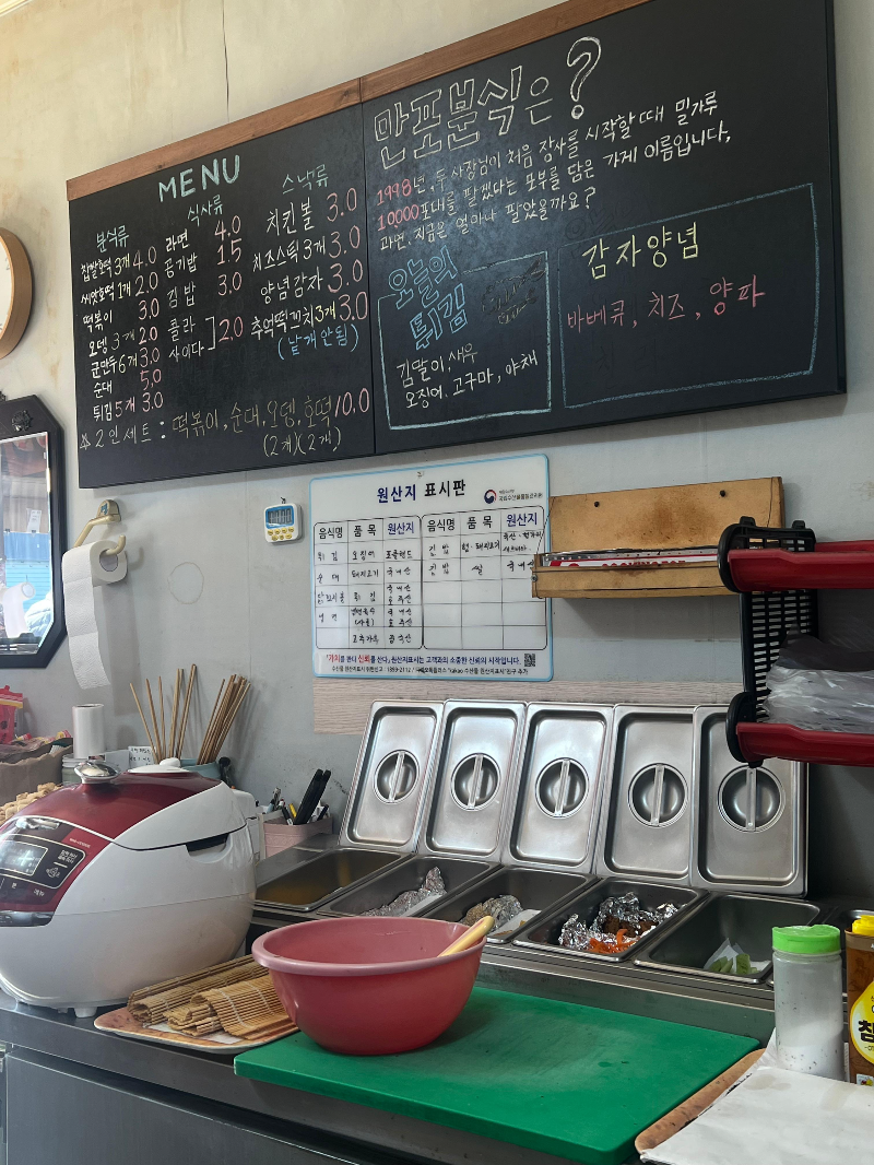 - 주요 메뉴: 떡볶이, 김밥, 오뎅 (옛날 분식 정석)