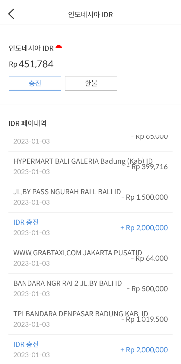 말레이지아에서도 인도네시아 발리에서도 카드를 사용하면서 수수료가 따로 발생하지 않습니다.