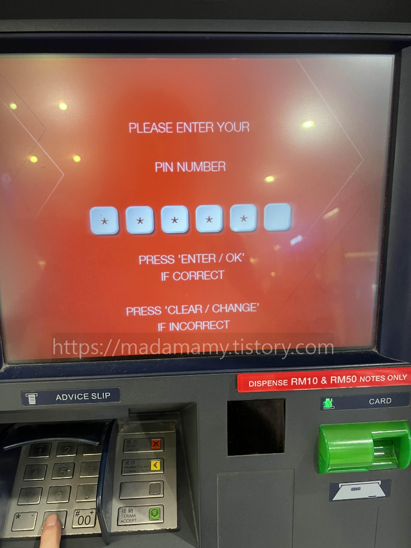 말레이시아에서는 20링깃, 50링깃, 발리에서는 50000루피아, 100000루피아 단위의 화폐로 인출이 가능합니다. 인출하는 순서를 알려드릴게요 , 말레이시아나 인도네시아나 순서는 같아요.
