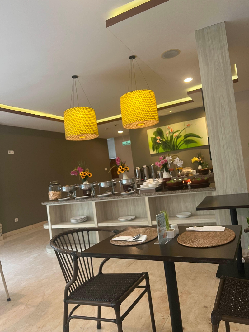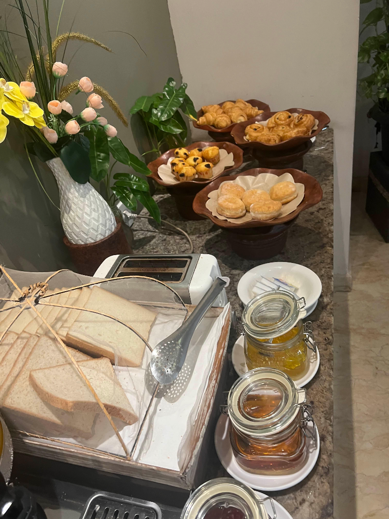 조식에 대한 리뷰가 좋지 않았었고 호텔 밖으로 나가면 식당이 많아서 고민을 하다가 조식포함으로 예약을 했는데 결론은 잘했습니다. 우기라서 비가 오는 날이 많았는데 그럴 때마다 비를 맞으며 식당을 찾아갔으면 힘들 뻔했습니다. 매일아침 1층 레스토랑에서 뷔페식으로 차려진 조식을 즐겼습니다.