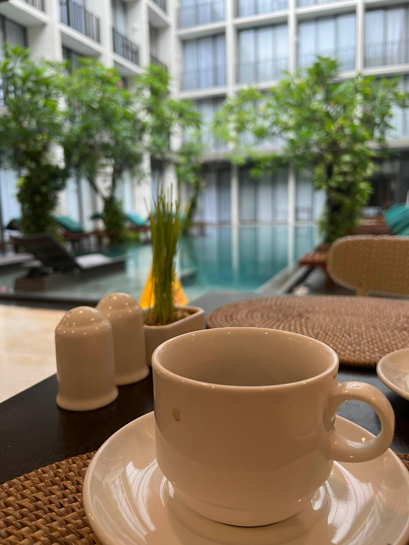 1층 레스토랑은 조식뷔페에만 운영이 되기 때문에 다른 시간에는 자유롭게 개인적인 공간으로 사용가능합니다. 수영장을 바라보고 앉아서 커피를 마실 수도 있고 노트북을 가져와 영화를 보거나 작업을 할 수도 있어서 편리했습니다.