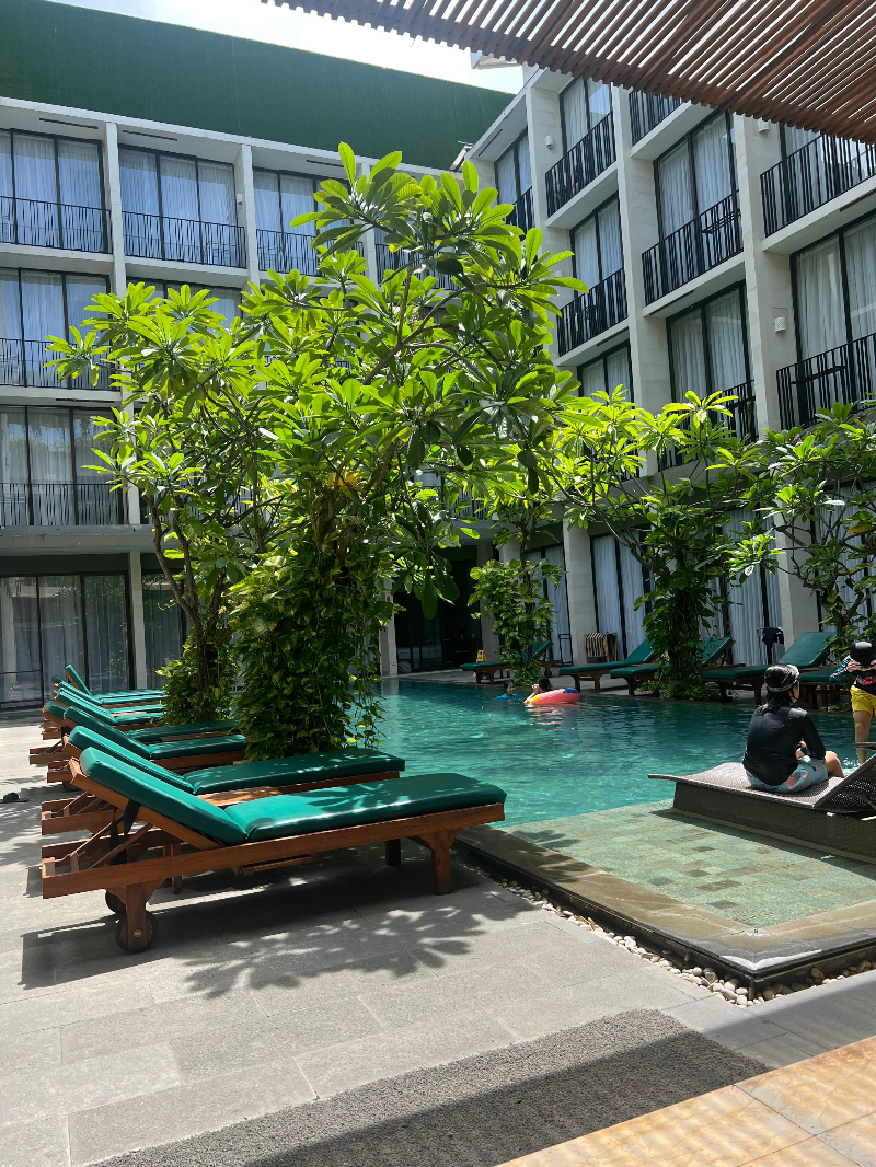 비가 많이 내려서 수영장을 제대로 즐기지 못한 아쉬움은 있지만 Hotel Terrace at Kuta에서의 시간은 그럼에도 불구하고 만족스러웠습니다. 호텔은 쿠타비치에서 도보로 10분 거리에 있어서 비가 그치면 바로 해변으로 나가 산책하기에도 좋았고 주변에 쇼핑몰과 맛집도 많아서 지루하지 않았습니다.